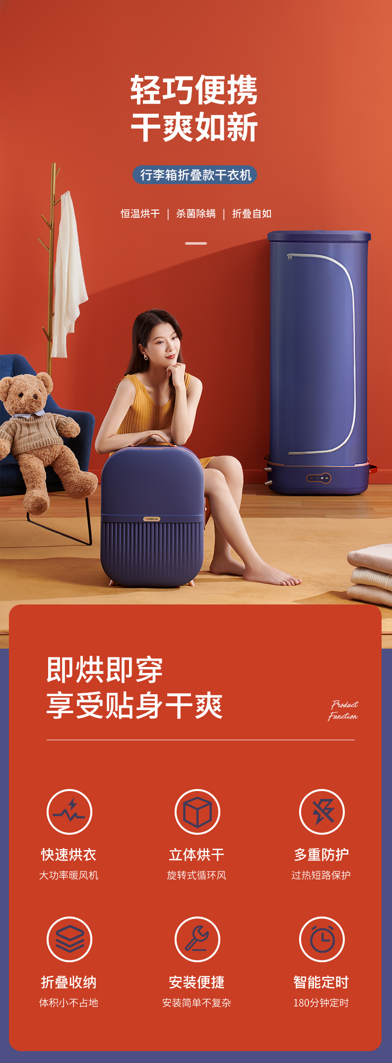 行李箱折叠款 烘衣+收纳 安装简单 恒温烘干 杀菌除螨