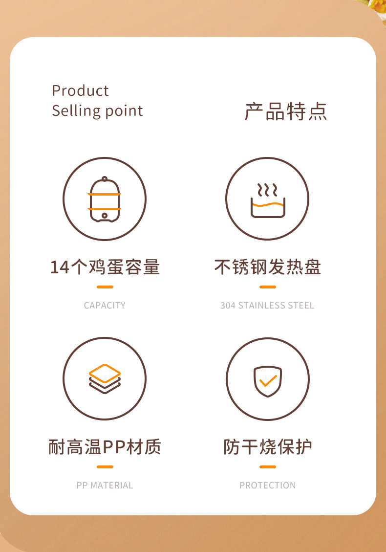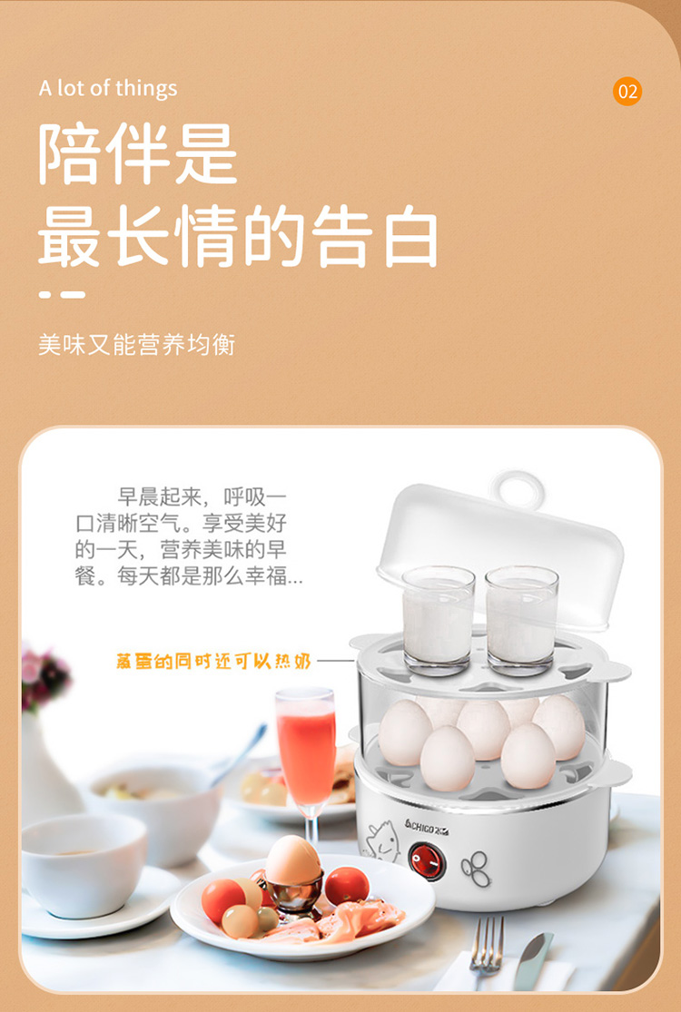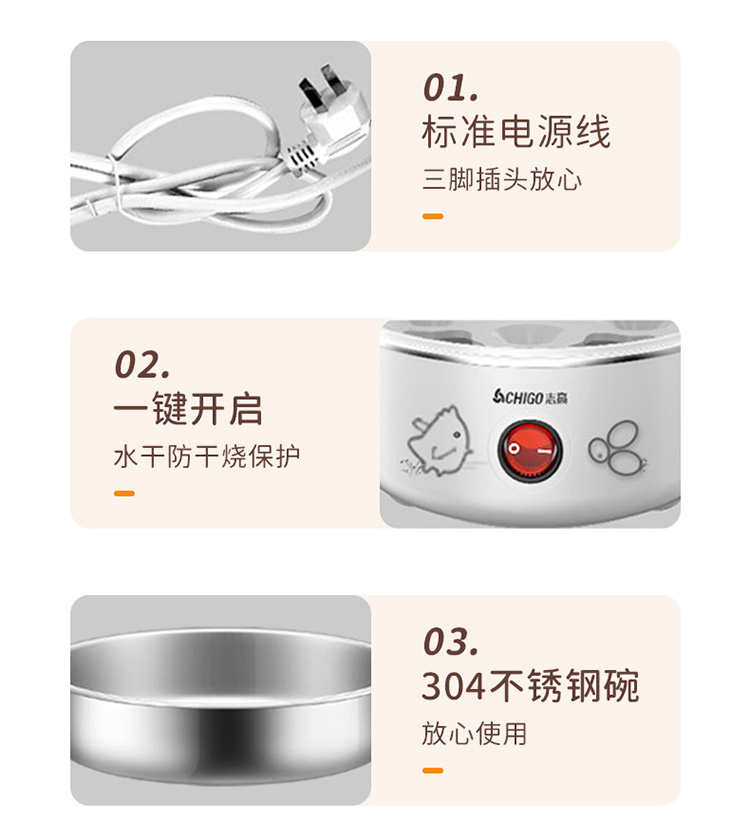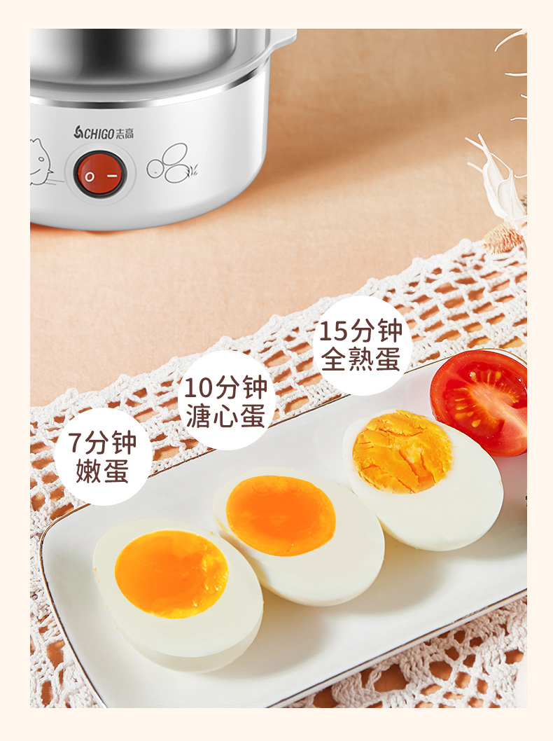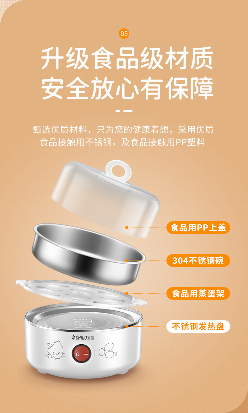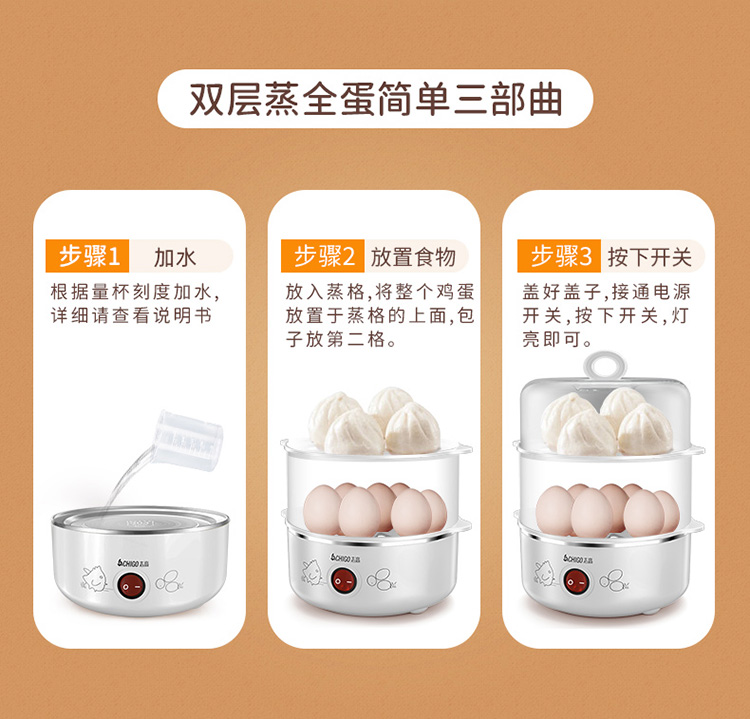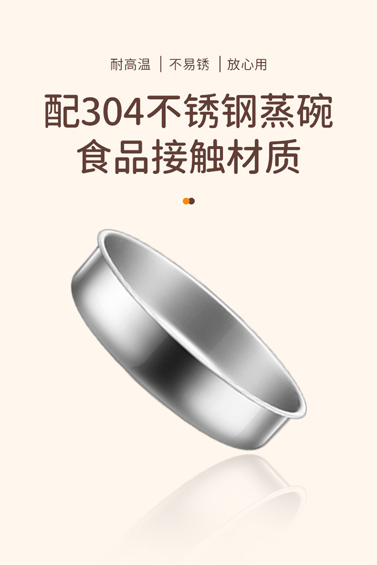 配304蒸碗+量杯/双层大容量/防干烧保护/不锈钢发热盘/可煮14个蛋
