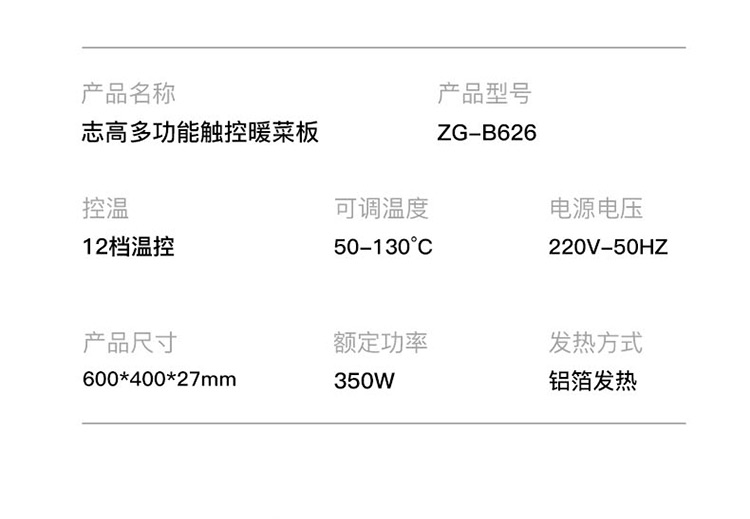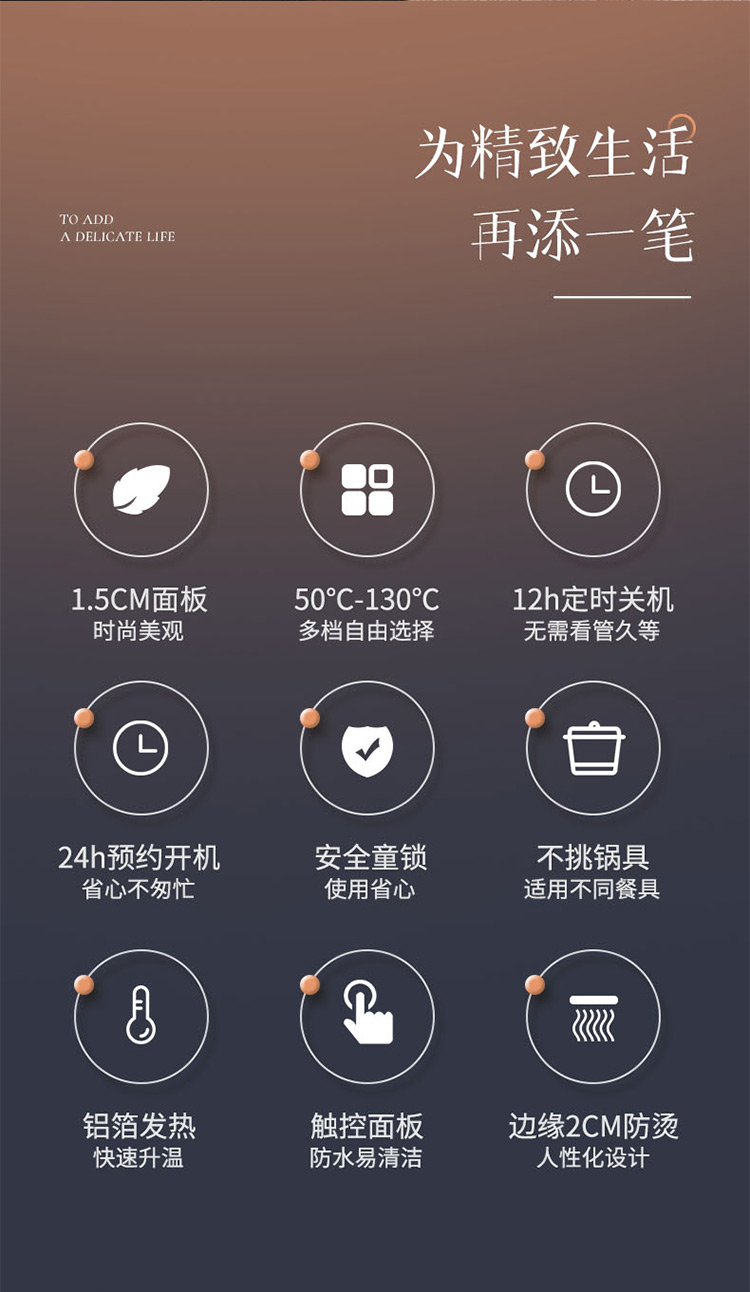 50℃-130℃多档温控/12大保温功能/定时预约/不挑餐具/耐高温面板/智能恒温/智能触屏/童锁设计
