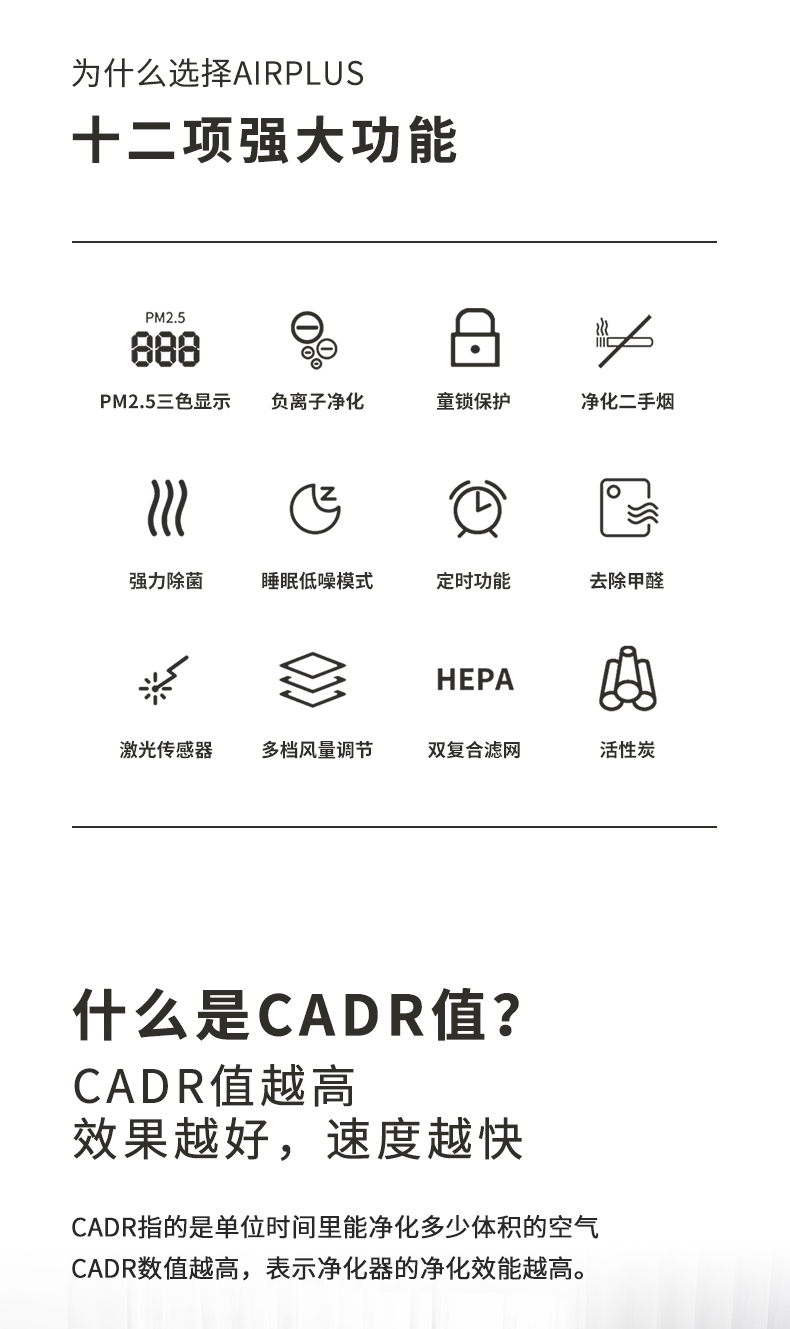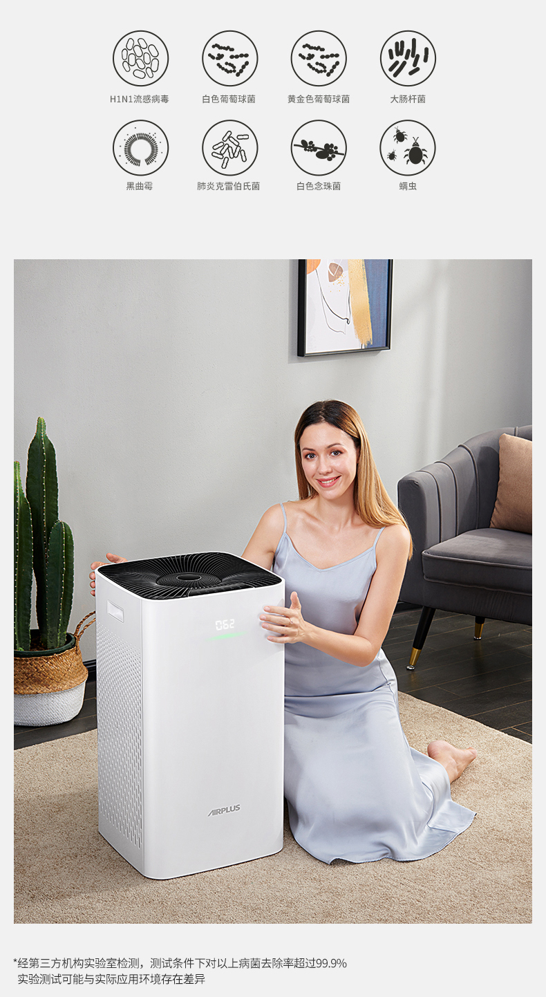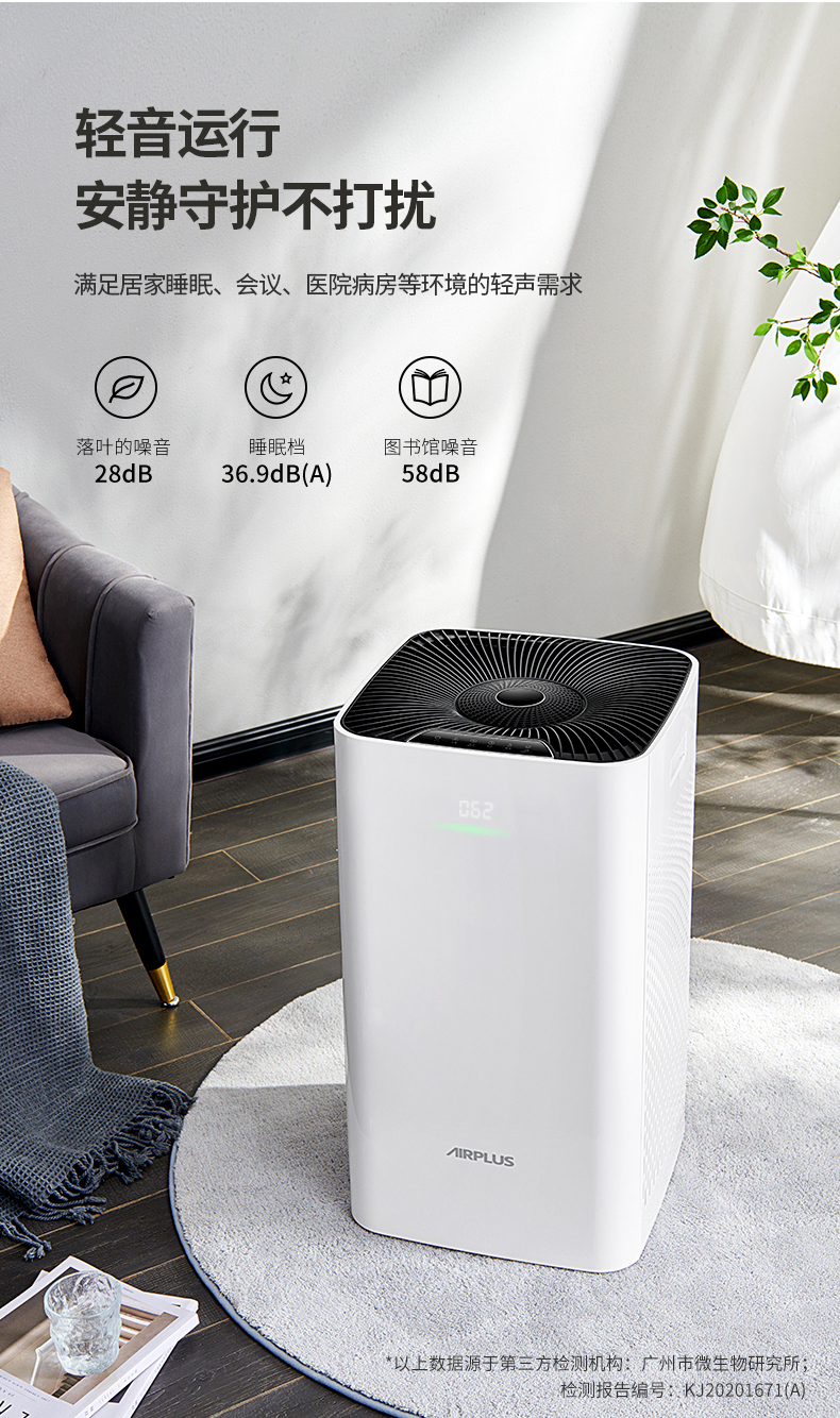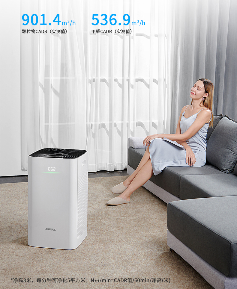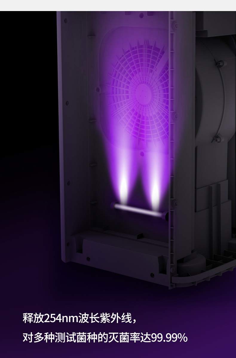 双面进风,双倍效果错步式涡轮结合扇叶黄金出风角,出风更稳定高效,360度全方位净化