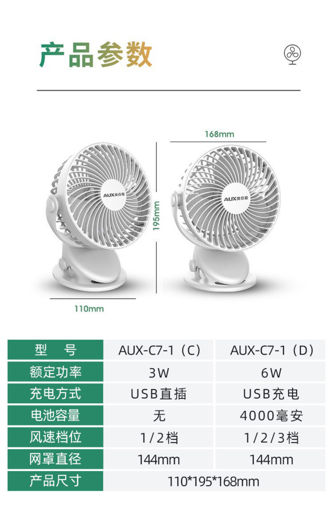 3档风量调节,USB接口随插随用,360°旋转大面积送风