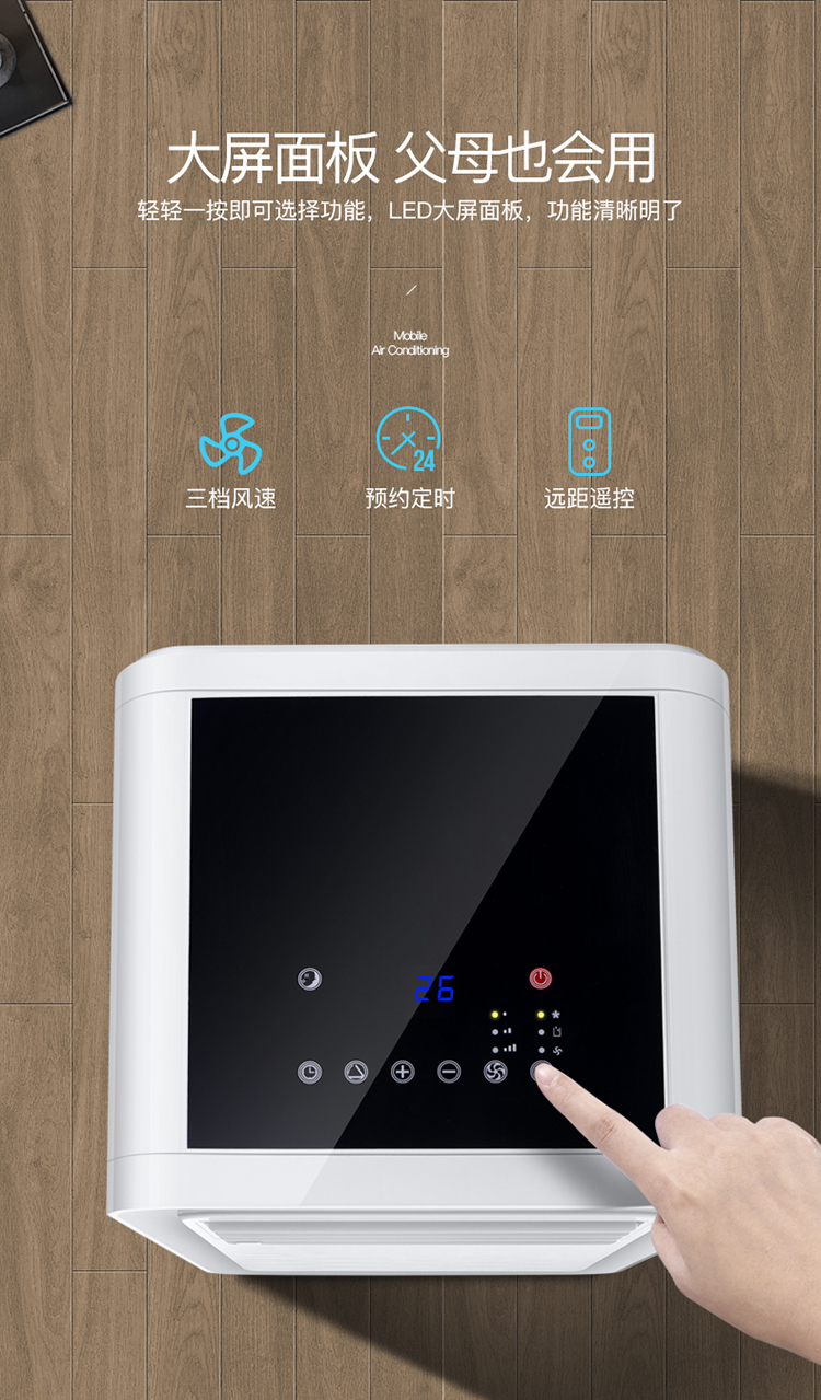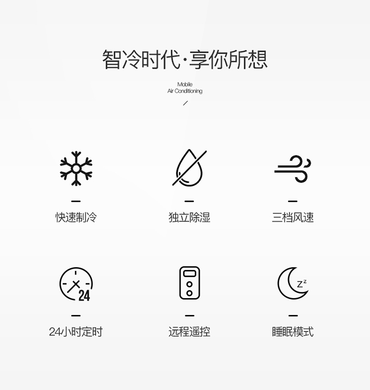 快速制冷,三档风速,24小时定时,远程遥控