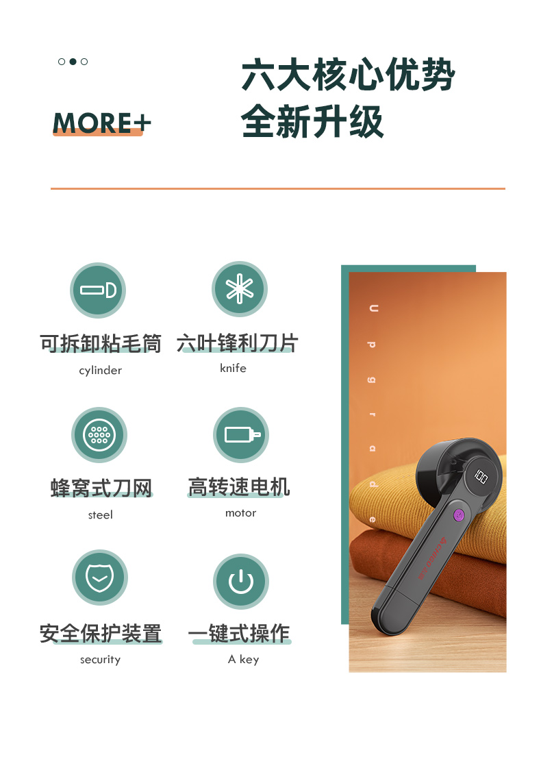 可拆卸粘毛筒,六叶锋利刀片