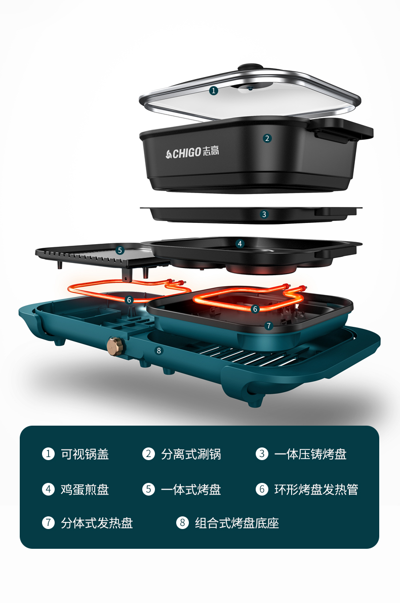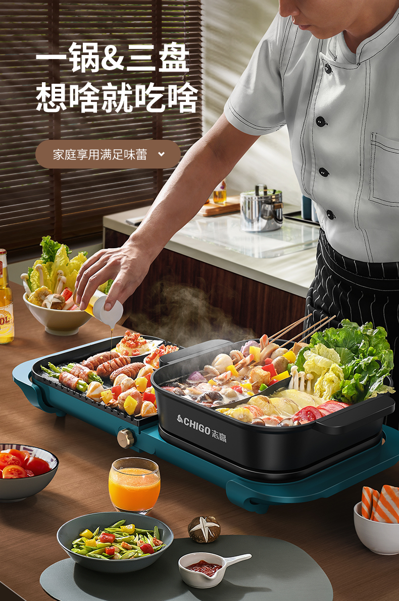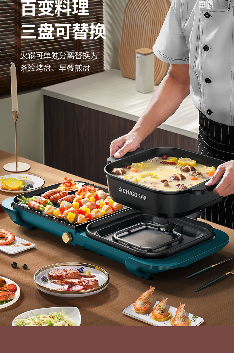 志高涮烤一体锅电烤炉